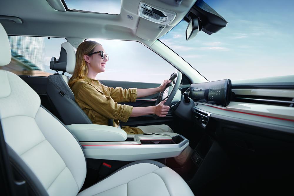 Laadukas sisustus: Torres EVX:n sisusta on yksinkertaisen tyylikäs. Kuljettaja saa kaiken tarvittavan tiedon vierekkäin olevilta 12,3 tuumaiselta digitaalimittaristolta ja 12,3 tuumaiselta multimedianäytöltä. Korkean istuma-asennon ansiosta autoon on helppo nousta kyytiin ja siitä on erittäin hyvä näkyvyys ulos.